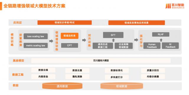 据百川智能介绍,为了在不损失通用能力的情况下提高模型的专业能力,百川智能专门在全链路领域打造了一套增强方案,包括高质量数据建设、模型预训练、微调、强化学习等环节。Baichuan4-Finance 正是这一策略的最新成果,其优质金融数据全面严谨,包括核心专业金融知识数据和实际应用数据,为提高金融能力提供了良好的支持。