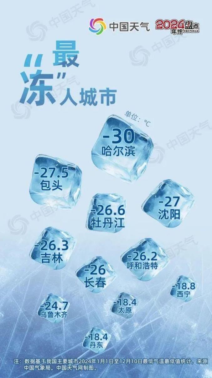 今年,哈尔滨以-30℃成为最冷的城市