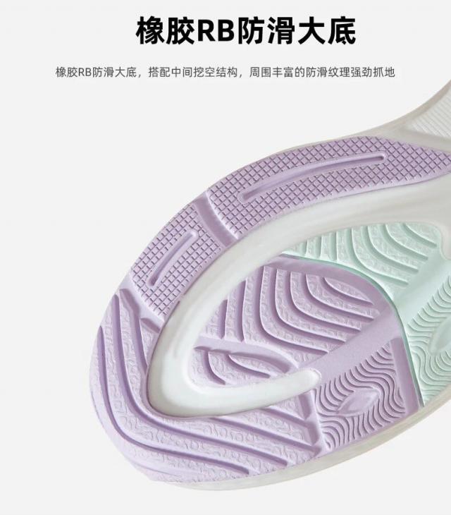橡胶RB防滑鞋底,结合中间掏空结构,上脚不需要磨合,就能感觉到弹性,帮助轻松开跑。