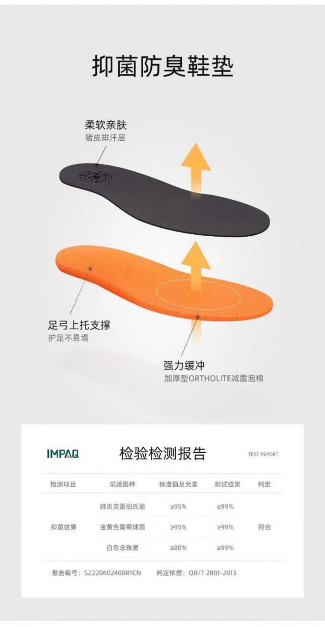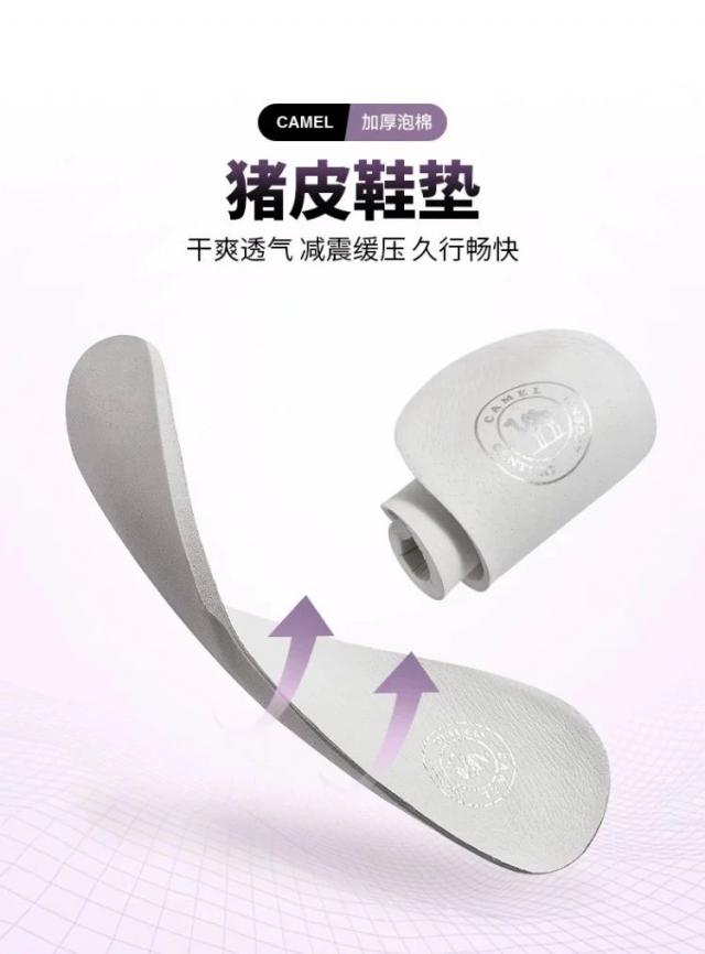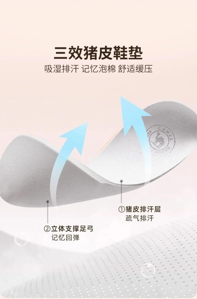 三效猪皮鞋垫,有效吸湿排汗,减少脚底出汗的粘腻感,同时也能完美贴合脚型,减少扁平足带来的不适。
