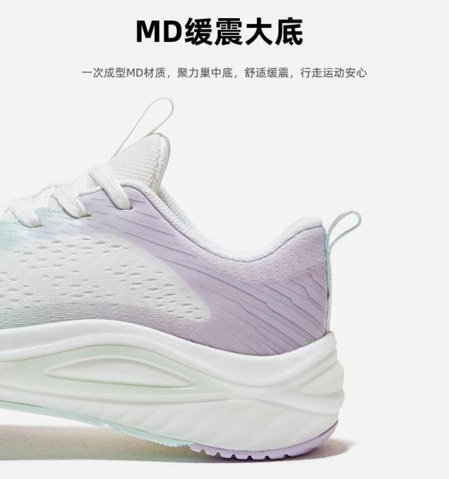 MD缓冲材料一次成型鞋底,聚力巢中底,动态缓冲,能减少运动时落地时对双脚的冲击,舒适减压。