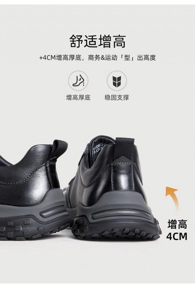 鞋底自带4cm隐形厚底增高。,上脚超柔软舒适,稳定支撑双脚,让您无论是商务还是运动,都更加时尚有型。