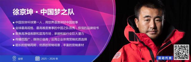 比赛的顺利结束也标志着新挑战的开始,2024 年 11 月,徐京坤带领“中国梦之队”。作为赛史上第一位中国舰长,旺代单人不间断环球帆船大赛(以下简称旺代环球帆船大赛),挑战有“航海人奥林匹克”美誉的。这个团队将是中国品牌,尤其是中国海外企业,在市场定位和人群中打造全球品牌形象,突出中国精神的国际体育营销优质资源。