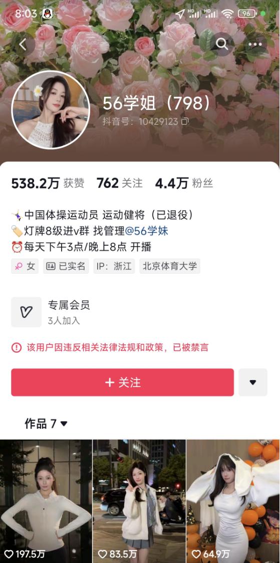 前体操冠军成为网络名人!吴柳芳再次被禁止清空600万粉丝 抖音回应