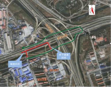 此外,从金旺北里、蔡台村、津淞公路北侧辅道(秀川路方向)到津淞公路的车辆,可通过外环线主线桥通过辅道F3向东行驶,通过F5辅道桥向北绕道至津淞公路北侧辅道通行。
