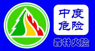 森林火险蓝色预警信号表示:未来一至几天的预警区域 森林火灾危险等级为二级,森林中的可燃物质可以点燃和扩散,具有中等危险性。警告信号标志的背景颜色和文字标记为蓝色,表示危险程度的文字为: 中度危险。