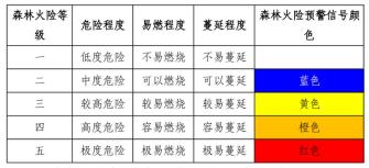 注意:一级森林火险仅发布森林火险等级预报,不发布预警信号。