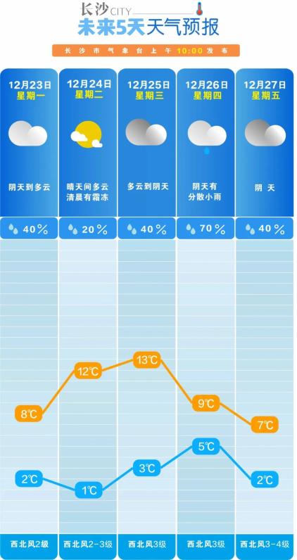 据长沙气候消息,虽然未来一周最高气温在10℃左右,但最低气温只有1-5℃,迟早会让人感到寒冷。每个人都应该注意防冻和保暖。