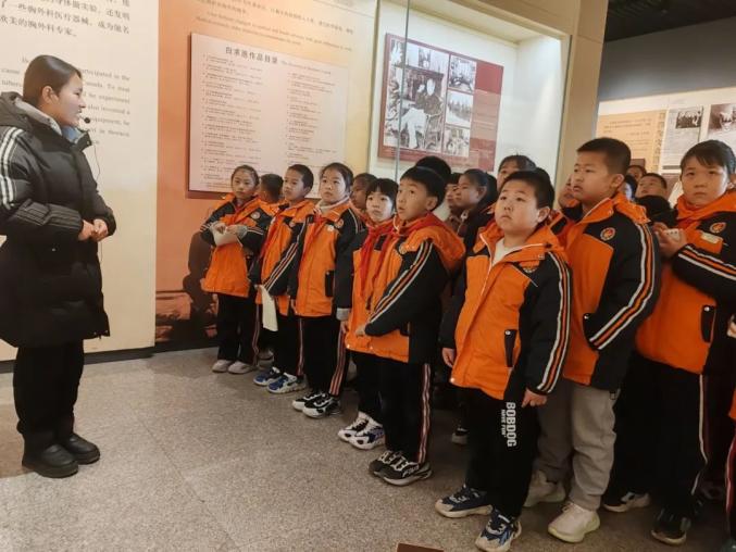 在白求恩柯棣华纪念馆广场前,学生们整齐地排队唱红歌,重温入队誓词,郑重地向白求恩柯棣华雕像献上花篮,表达深深的敬意。在参观过程中,评论员详细讲解了白求恩的生活故事和伟大精神,珍贵的照片、珍贵的文物和生动的战斗场景,还原了两位国际主义战士白求恩和柯棣华的人生轨迹和辉煌历程。学生认真倾听,感受革命先烈高尚的国际主义精神和无私奉献的情怀,在历史文献、影像资料、抗日文物、战斗场景雕塑、红色文化宣讲中。