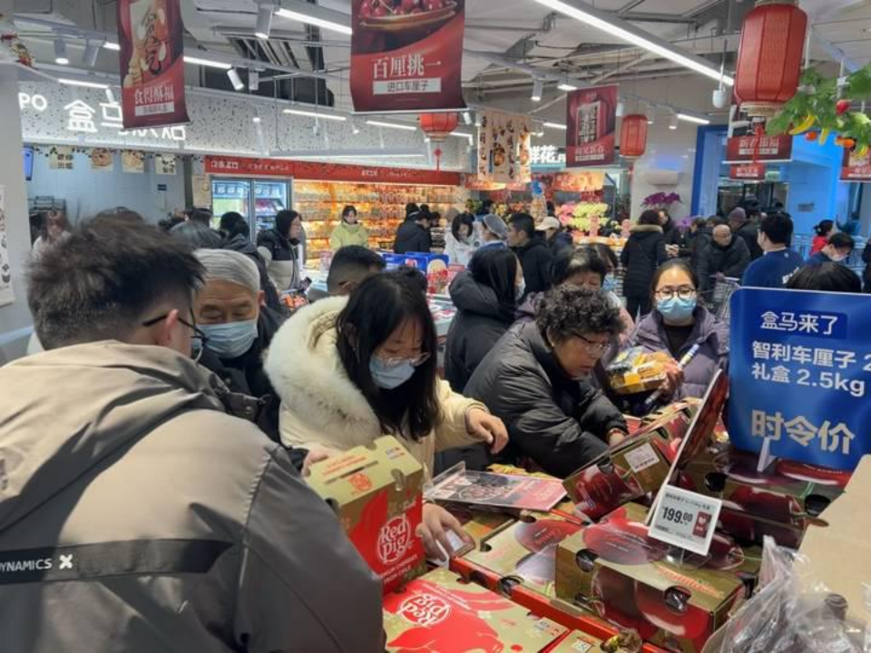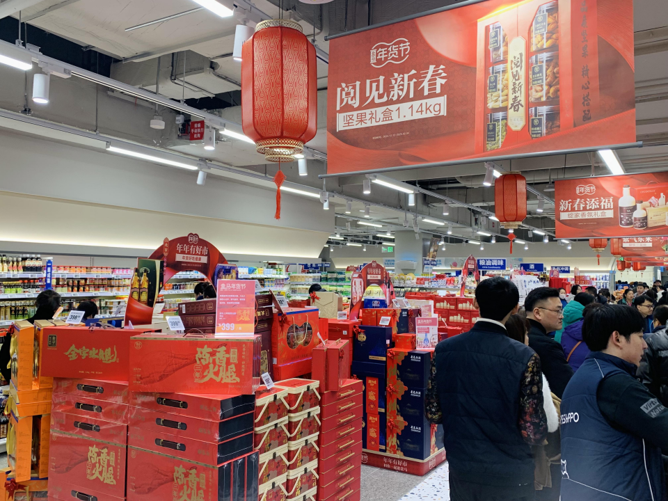 他说:“我一大早就来了,赶上了第一波入店。除购买点菜外,我主要想买些年货准备过年。” 市民阮阿姨告诉记者,盒马的年货种类很丰富,价格也不贵,寓意也很好。“你可以在这里买到所有的礼物,老少皆宜。”