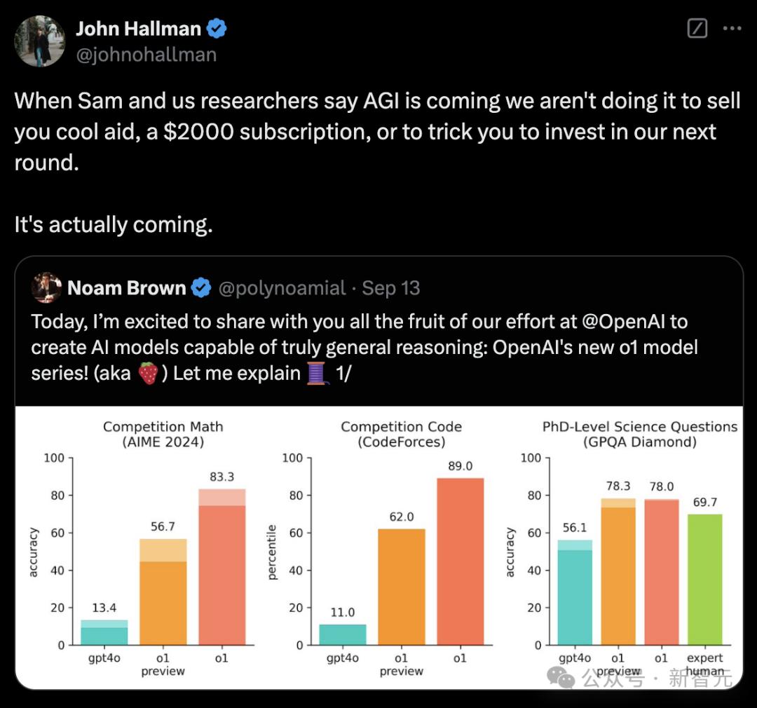 另一位OpenAI研究员John Hallman告诉我们,当Sam告诉我们的研究人员AGI即将到来时,我们不是为了给你画蛋糕,不是为了推2000美元的订阅,也不是为了欺骗你投资我们的下一轮融资。它真的来了。