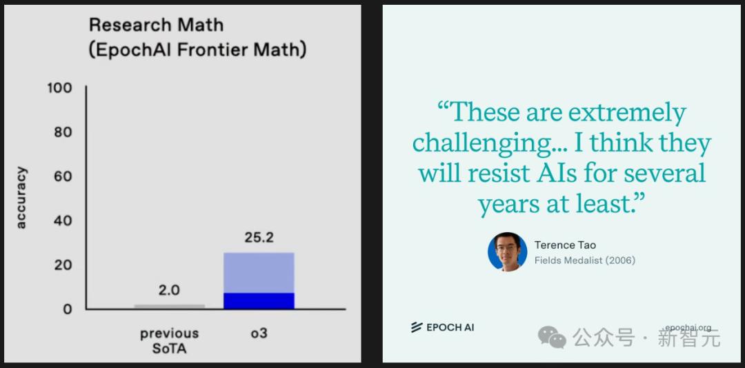 同时,o3在FrontierMath的数学标准中的惊人表现令人生畏,甚至突破了陶哲轩的预言。