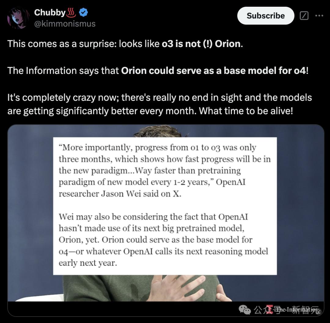 据Information独家报道,o3不是Orion模型的代号。相反,Orion可能是o4的基本模型。
