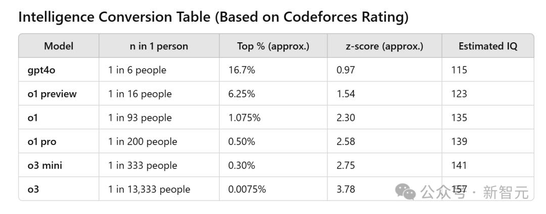 从图中可以清楚地看到,能够达到o3智商水平的人类占比只有0.0075%。
