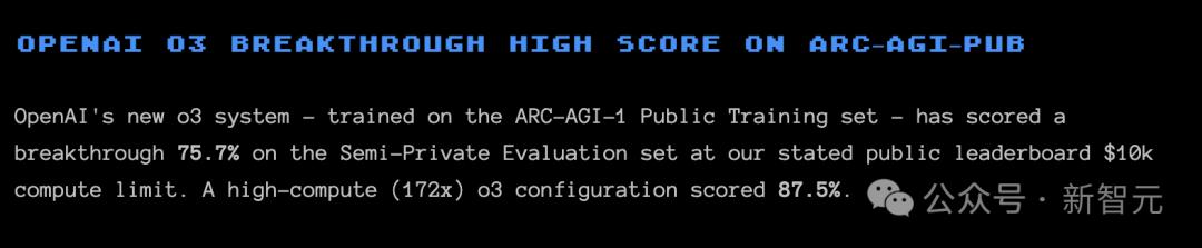 据OpenAI称,在基准测试ARC-AGI中,o3在低计算模式下的半私有评估得分为75.7%。;得分为87.5%的高计算模式。