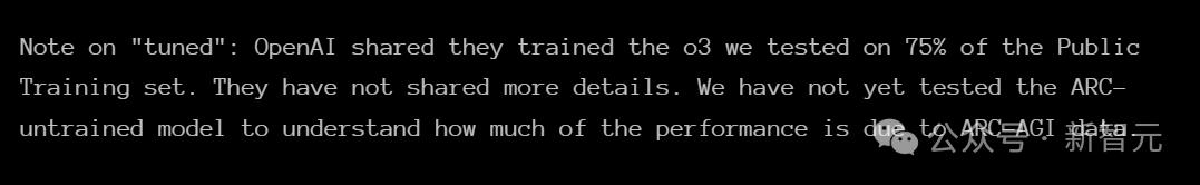 OpenAI分享说,他们测试的o3是在公共训练集75%的数据中进行的。它们还没有透露更多的细节。目前还没有对ARC数据训练模型进行检测,因此还不清楚ARC-AGI数据中有多少性能。