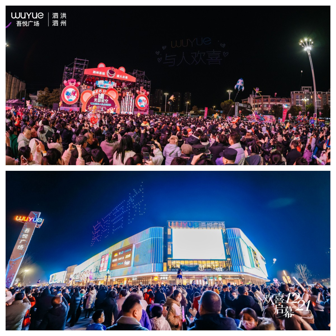 12月20日,泗洪泗州吾悦广场开业;12月21日,涟水滨河吾悦广场提前9天正式亮相。两个吾悦广场的高质量持续实现,再次验证了吾悦商业管理的速度和质量。