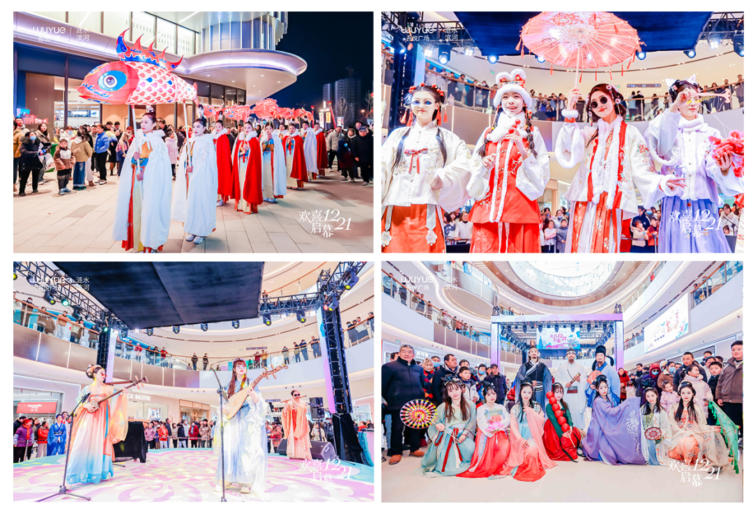 在涟水滨河吾悦广场,非物质文化被赋予了新的生命和活力。该项目带来了当地的非物质文化活动,如苏轼&米穿越快闪秀、汪满田鱼灯巡游、三弦表演、剪纸走秀、皮影戏等。,并以视觉奇观呈现东方美学,客户甚至可以在我悦跳一场国潮唐迪。消费者在互动中感受传统文化的魅力,实现文化消费的深度参与和体验升级。