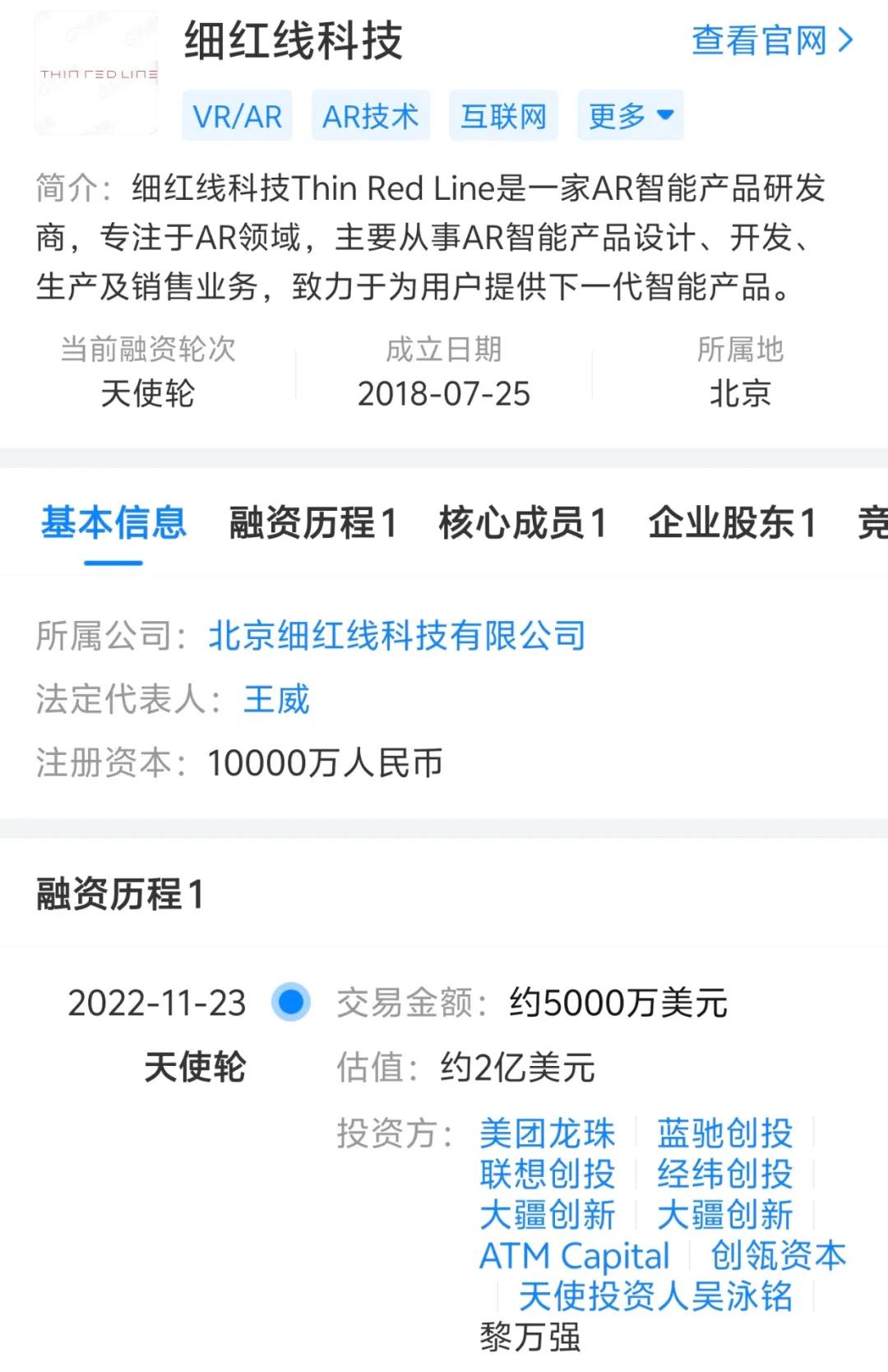 同一年十一月,细红线科技宣布完成天使轮融资约5000万美元,投资后估值约2亿美元。