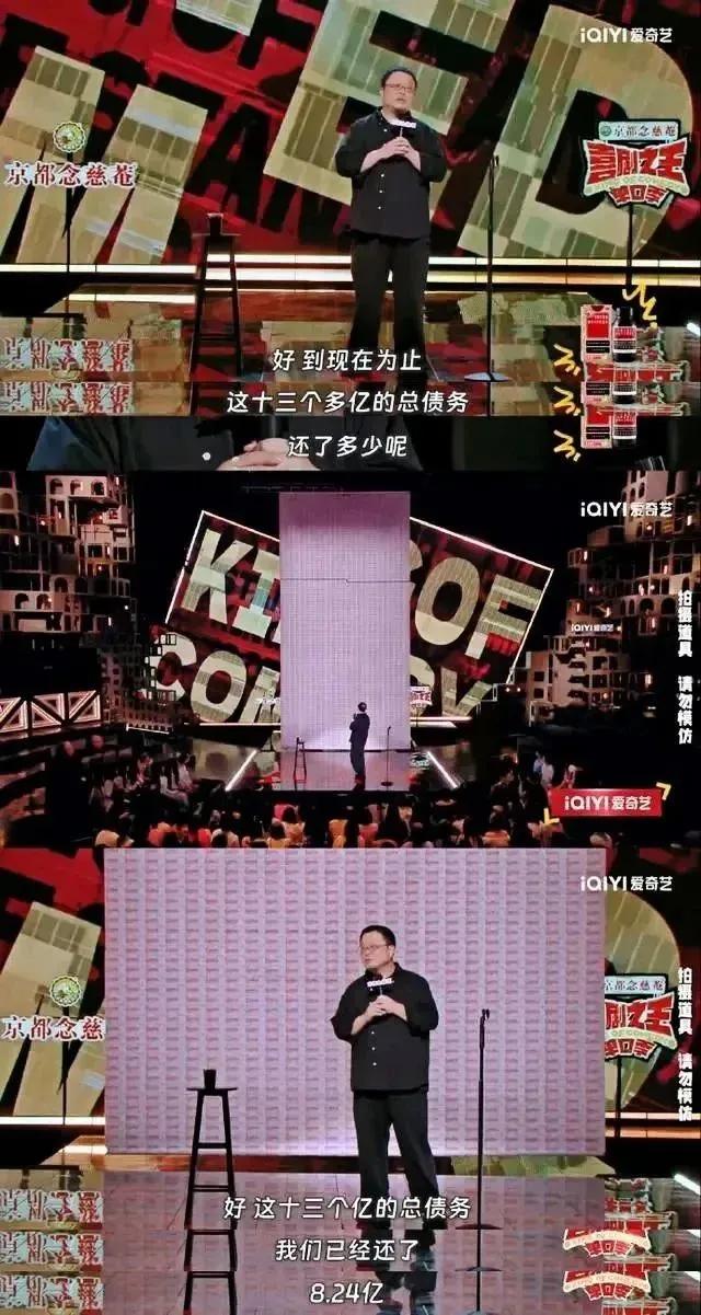 9月27日,罗永浩在综艺节目《喜剧之王·单口季》中,将自己的8.24亿元债务制作成一张巨大的人民币海报,直观地呈现给观众,再次称霸网络。