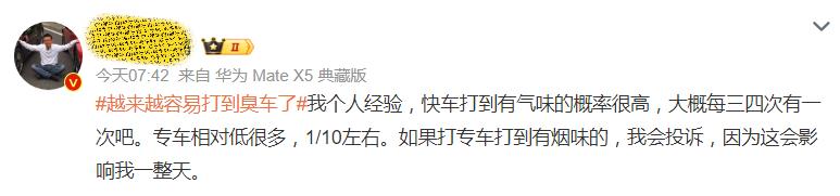 滴滴的态度倒也比较诚恳,第一时间关注到了舆情变化,并通过官方微博发布公告致歉:“非常抱歉和惭愧,没能为大家提供一个相对清新的出行环境,影响了大家的用车体验”,滴滴还表示,正开展“异味车”治理专项,争取改善大家的用车体验;