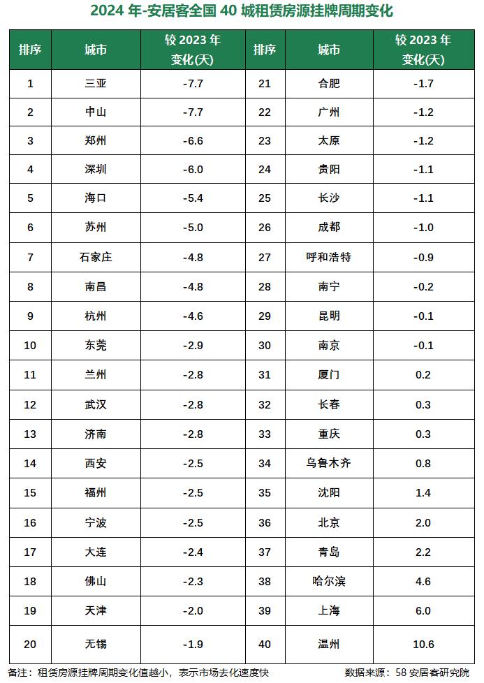 数据来源:58安居客研究院。附注:1.城市范围:全国租赁重点40城;各城市的市辖区,不包括县。2.数据样本:数据基于市场公开信息、58同城网站及安居客网站自有监测数据、历史沉淀大数据等。