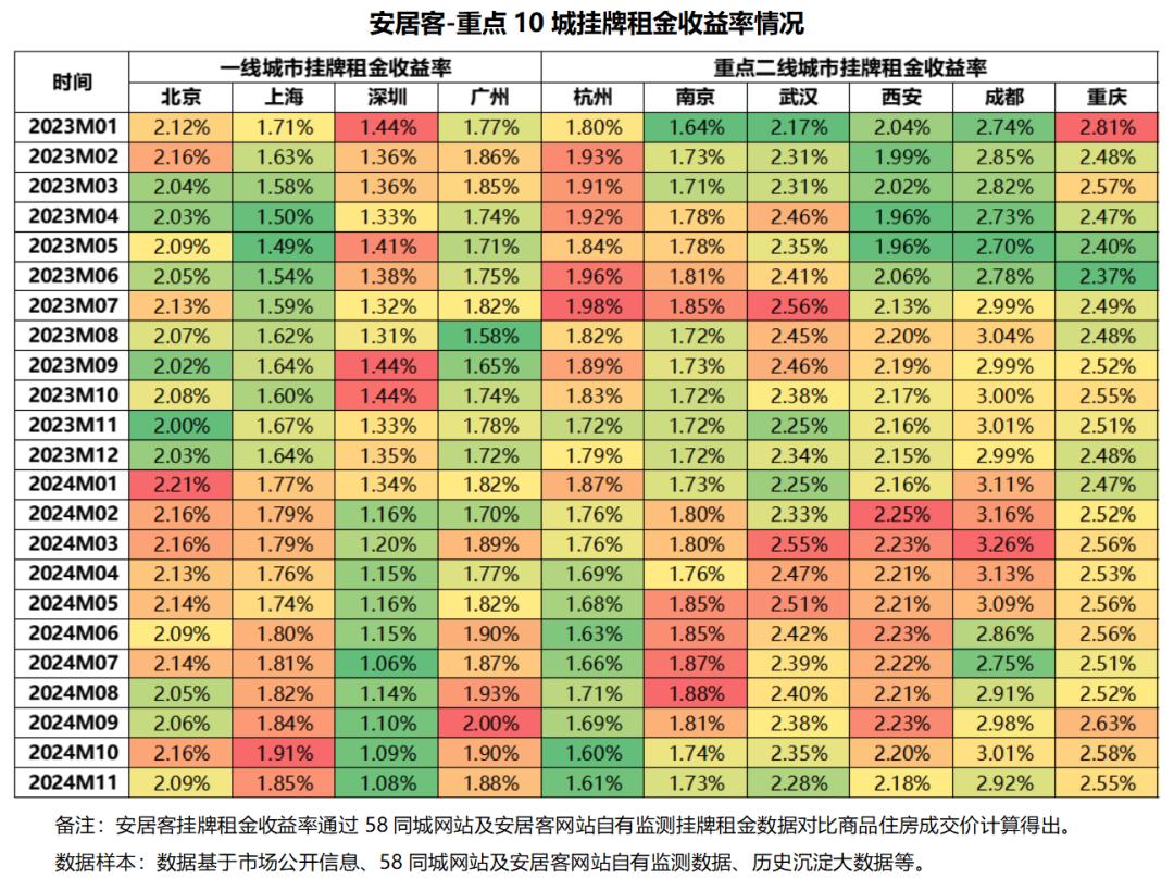 重点10城整体租赁挂牌收益率趋于小幅上升