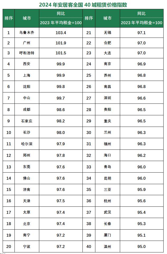 2024全国租赁市场:仅3城价格指数同比上涨,一半城市小幅下跌