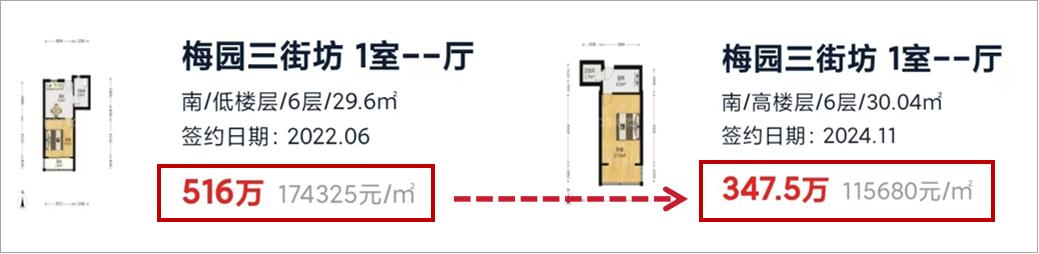 2年前同户型一室户单价接近8万/平,而今到了5万多的水平。这个案例也成为市区老破小的一个成交缩影:跌落的价格换来超量的成交。