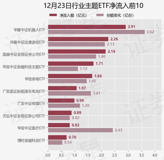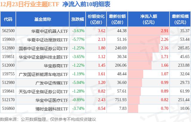当天有 148 只行业主题 ETF 资金净流入显示,其中华夏中证机器人净流入排名第一。 ETF(562500),份额增加 3.62 十亿份,净流入额为 2.91 亿元。