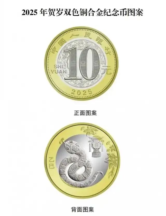 从2024年12月23日起,中国人民银行预约发行2025年普通新年纪念币和纪念币。2025年,“蛇币”面值为10元,材料为两色铜合金,发行量为1亿枚,2025年“蛇钞”面值为20元,选用塑料材料,发行量为1亿枚,两者均采用面值等价换取。