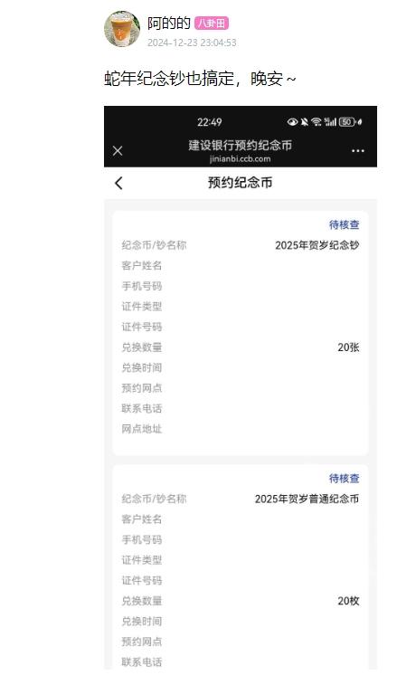 “蛇年纪念币预约”于23日晚在微博热搜。