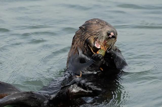 然而,在加州唯一一个拥有海獭的河口埃尔克霍恩沼泽地,发生了一件令人惊讶的事。螃蟹的数量完全得到控制,无需人类的干预,依靠海獭的良好食欲。。海獭没有保暖的鲸鱼脂肪(海洋哺乳动物皮下的脂肪),需要每天吃相当于体重和重量。 25% 食材可以支撑自己的能量消耗——螃蟹是他们最喜欢的食物之一。保护区的研究人员估计,这里的海獭每年都可以吃。 5 万~12 一万只普通滨蟹。