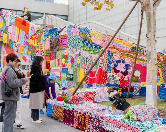 在上海立冬时期,西岸美术馆大型编织公共项目“线线连接”正式出现在艺术馆外,营造出一种温馨的冬日气氛。