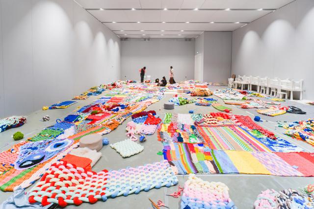 自 2024 年 11 自项目启动以来,不同创作个体的编织作品不断涌向艺术博物馆。这些作品通过“一人一平方”的线条相互连接,生活和艺术相互连接。西岸美术馆希望通过编织这种包容的创作媒介,重新发现个人的创造力,尝试实现公众从“观者”到“同创者”的转变,让“每个人都是艺术家”的理念在这里扎根发芽,让这些连接色彩、温度、情感的纤维成为冬天最温暖的地方。
