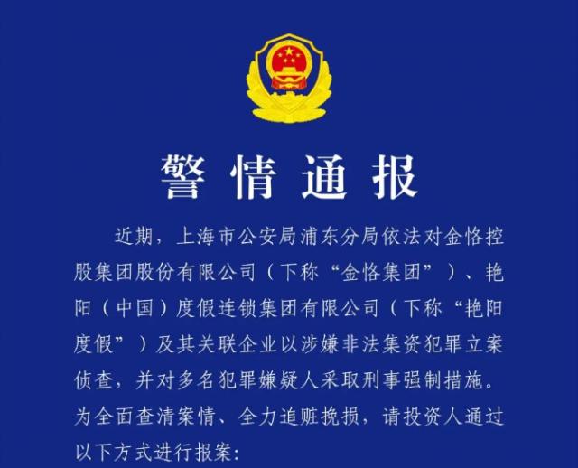 近日,上海浦东警方发布警方通知,引起文化旅游行业关注。通知显示,金恪集团、艳阳度假等已被立案调查,犯罪涉嫌非法集资。迈点研究表明,涉嫌非法吸收公共存款的平台包括“金恪集团”、“艳阳度假”等多家公司平台,因此也被称为“金恪艳阳”。