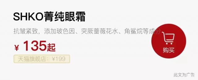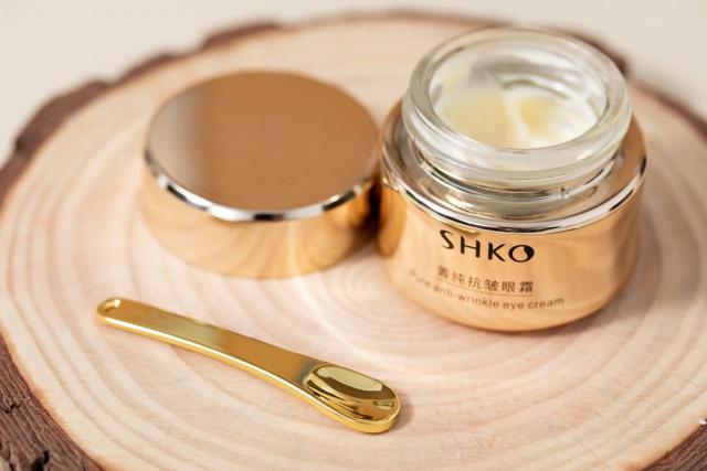 SHKO 纯净眼霜,则改用维生素 C 海茴香提取物及衍生物,护肤界被称为“敏敏肌保护伞”