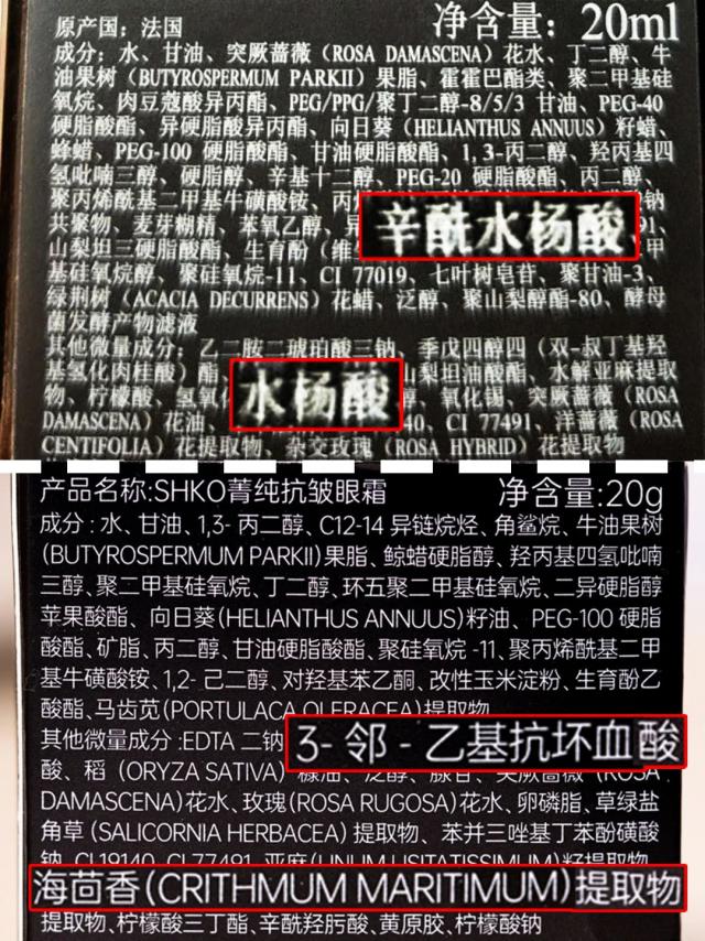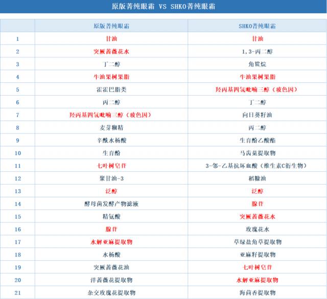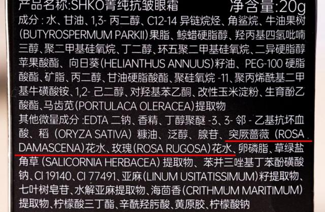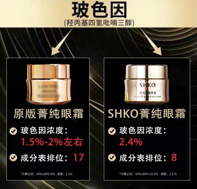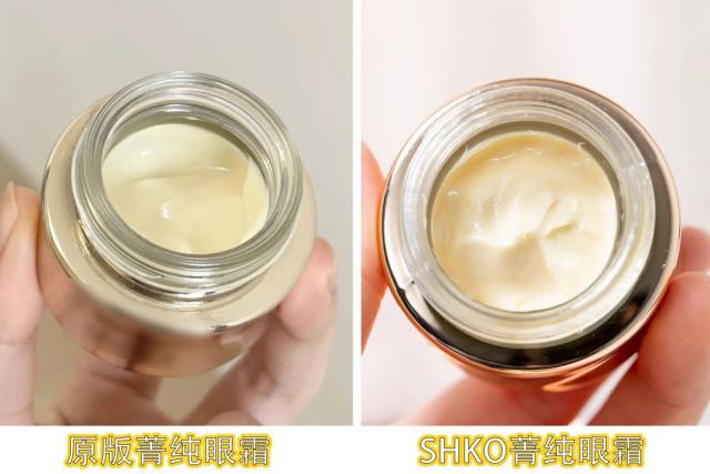 单看能滋养肌肤的成分和功效成分,SHKO 纯净眼霜一点也不逊色正版。(成分表前 10 位置,除水即为油)...