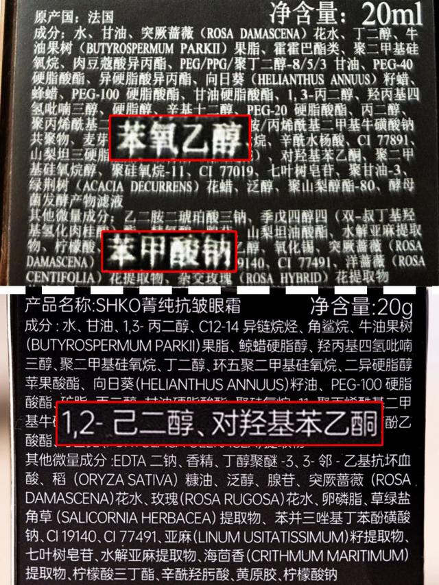 苯氧乙醇和苯甲酸钠用于正版眼霜,都属于化学防腐剂。