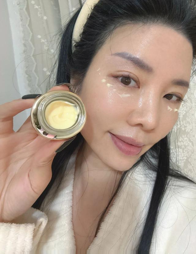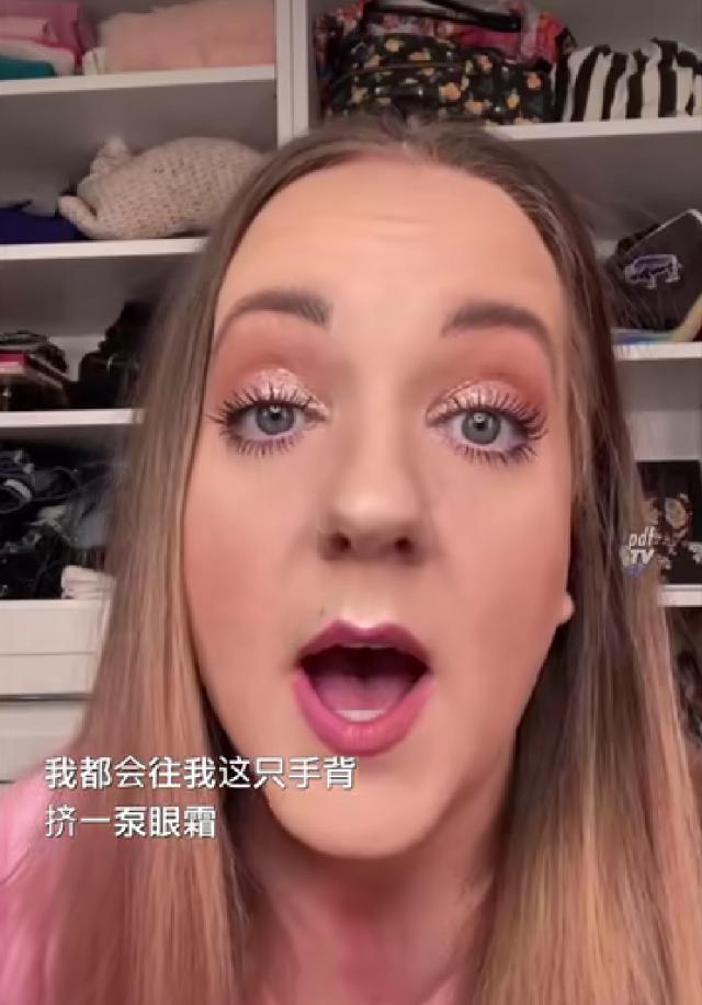 一个 40 一岁的外国妇女,在过去。 15 多年来,每天都坚持在左手手背上挤一泵眼霜,晕开涂在眼前。
