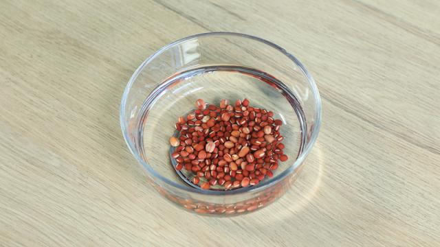 将红豆放入水中,浸泡 12 小时。