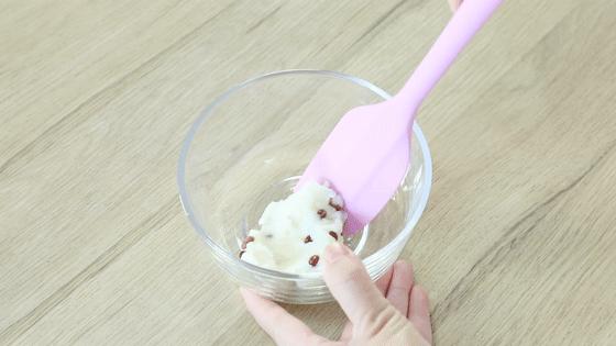 将煮熟的红豆加入山药泥中,搅拌均匀。
