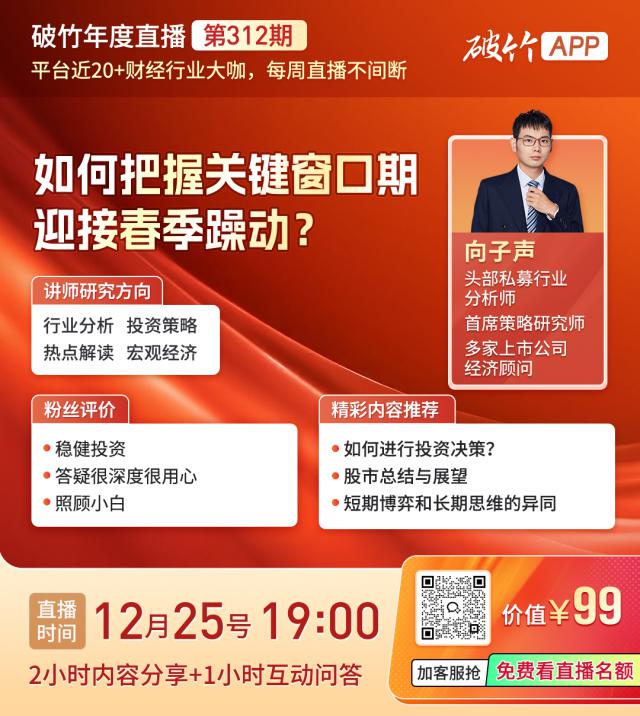 今晚 7 点击,在破竹直播间,我们邀请了大家熟悉的向子声老师为您带来: