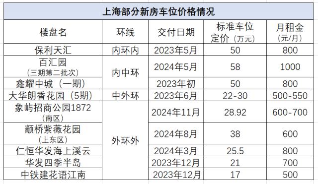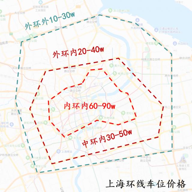 综合多方数据,目前上海各环线新房车位均价大致如下