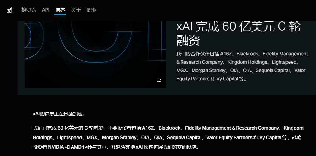 它的网站指出,到目前为止,xAI最强大的模型Grok 现在正在培训中,我们正在努力推出创新的新消费者和企业产品。这项融资将用于进一步加快他们的基础设施,推出数十亿人将使用的突破性产品,加快未来技术的研发,从而实现企业了解宇宙真实本质的使命。