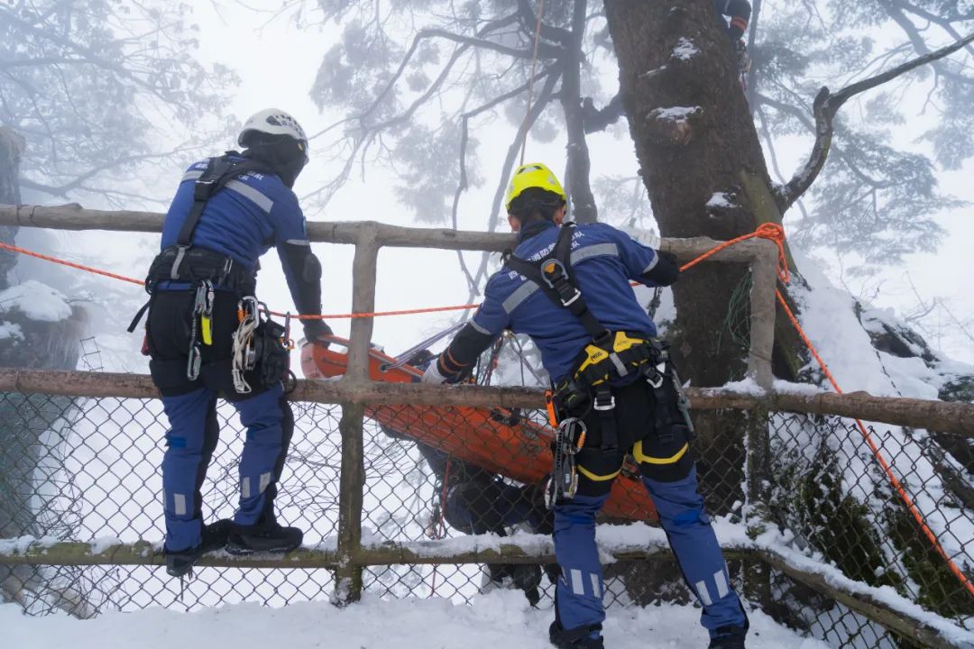 12月18日至19日,乐山市消防救援支队开展了为期2天的低温雨雪冰冻灾害实战训练,在辖区低温冰雪环境重点区域峨眉山景区海拔2850米的洗象池。集中组织大队低温雨雪冰冻灾害救援专业队伍开展了车载防滑设备安装、失温人员处理、雪地伤者转运、冰结组、冰滑制动、低温极端环境通信保障等6个科目的练习。
