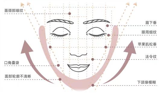 ● 它主要采用超声能量汇聚方法,通过精确加热皮下的温度。 SMAS 筋膜层,浅筋膜层(浅脂肪层)和真皮层,刺激胶原蛋白的再生和重排,达到紧致、改善面部下垂的效果。