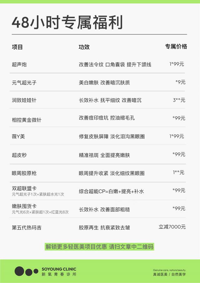 •要扫码进群才有这个价位哦,而且入群还可以参加抽奖,6 一个热门的抗衰老项目,随便一个都省了不少钱。