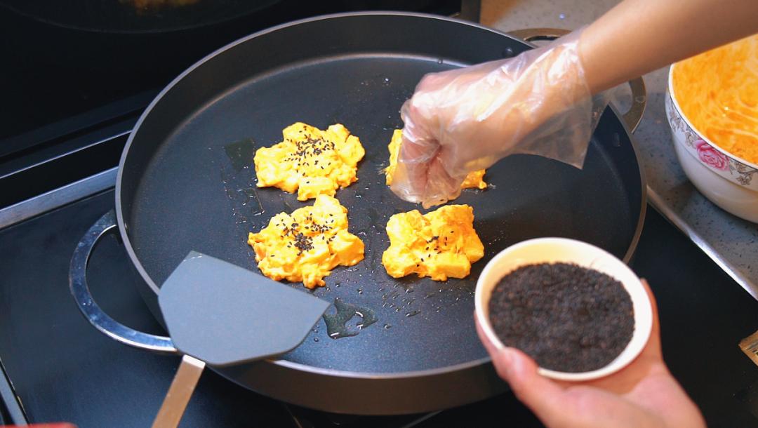 6. 最后撒上黑芝麻,煎至两面金黄。