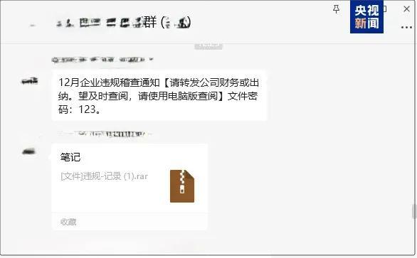 在此次传播过程中,攻击者继续通过微信群直接传播包括木马病毒加密压缩包文件的结构财务、税务违规检查通知等主题的钓鱼信息和收藏链接,如图所示。